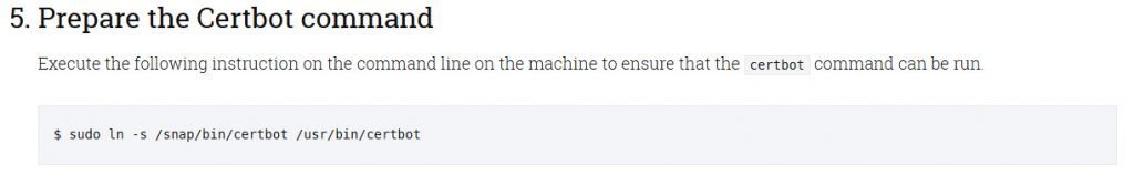 第五步,把certbot做连接到bin目录下,这里的目的是直接输入certbot即可调用这个软件。有时它会自动给你加这个连接那么你就不用操作这一步了。当你输入certbot,提示你找不到命令,则代表你没有做这个连接。